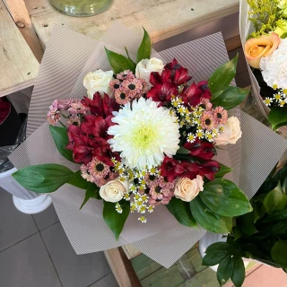 Лепестки искренних эмоций, переплетаясь в цветочной гармонии, создают эссенцию вдохновения. Букет "Индиана" – уникальное сочетание микса кустовых и одноголовых хризантем, роз и альстромерий. Бордовые и розовые тона олицетворяют лучшие моменты нашей жизни, воскрешая в памяти лишь самые нежные эмоции. Буйство форм и цветов словно вихрем взлетает, образуя изящную композицию в изысканной упаковке.